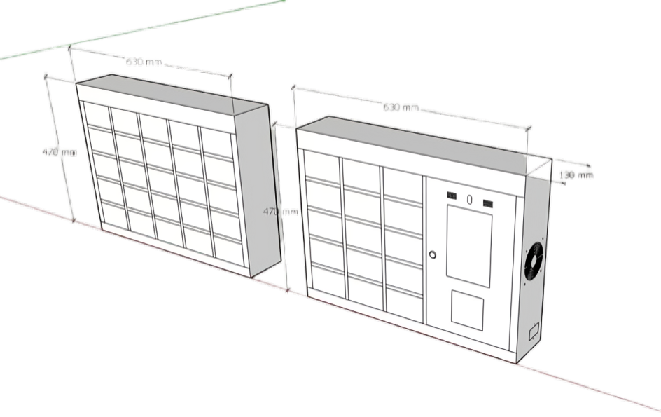 25-bin Expansion Unit: Same size as the KeyMate main device (630 mm x 470 mm x 130 mm).